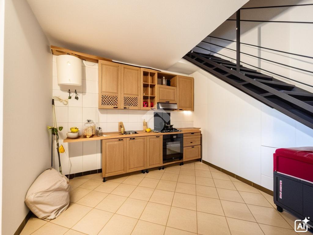 Si tratta di un appartamento bilocale in cortile semi indipendente; la soluzione è disposta su due livelli, al piano terra troviamo una zona giorno in open space discretamente spaziosa ed un bagno completo di doccia.