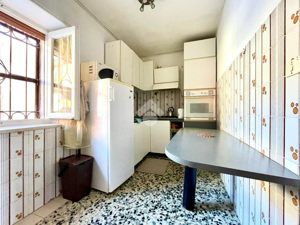 Al piano terra troviamo un luminoso soggiorno finestrato che conduce alla cucina semi-abitabile, completa di un bagno di servizio, realizzato nel 2004.
