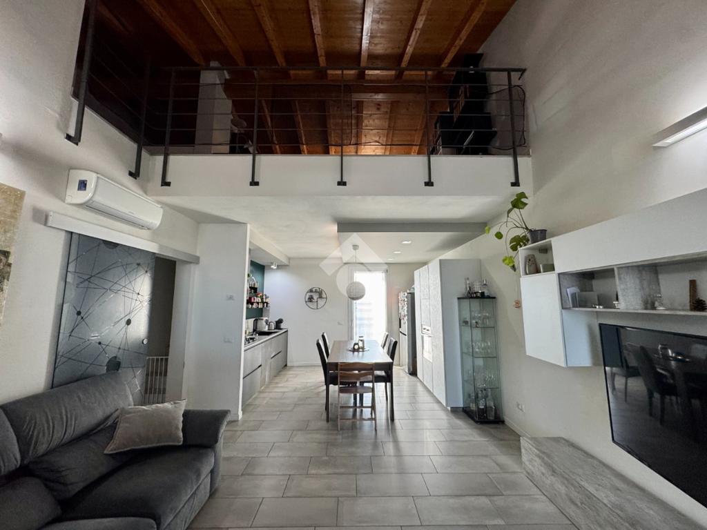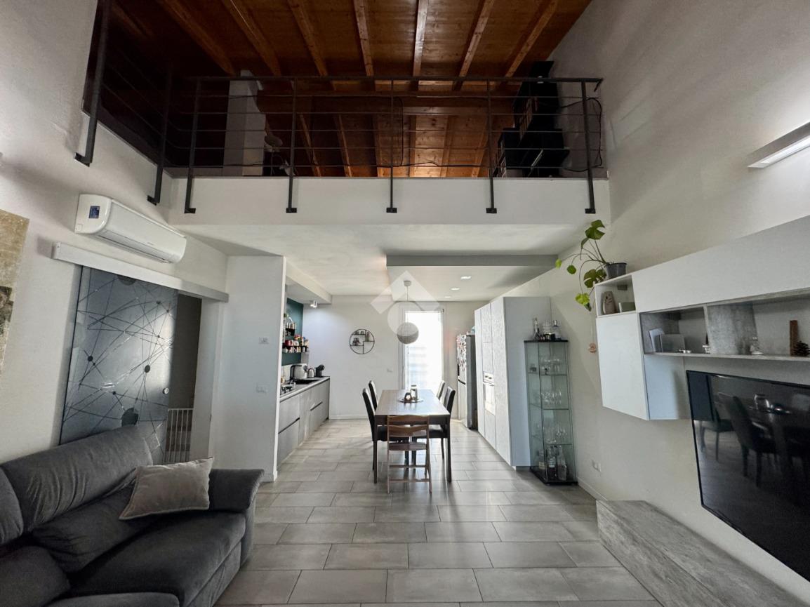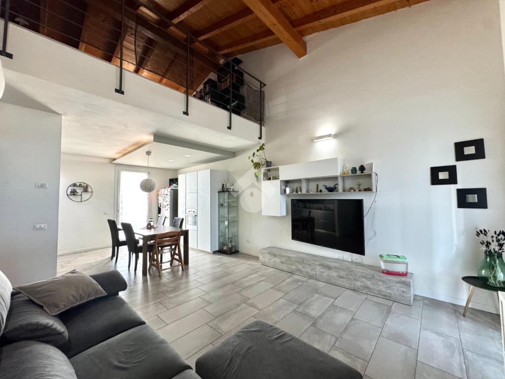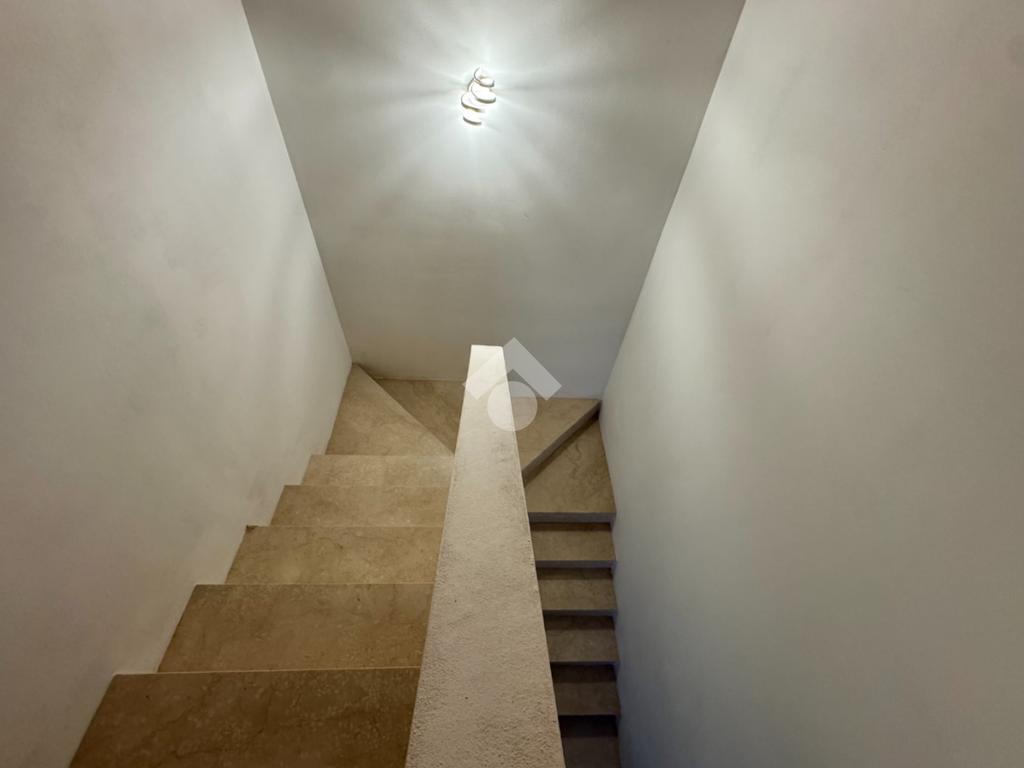 L’abitazione si sviluppa su più livelli e offre un’accogliente zona giorno open space con cucina a vista e accesso diretto al balcone, ideale per pranzi e colazioni all’aperto.