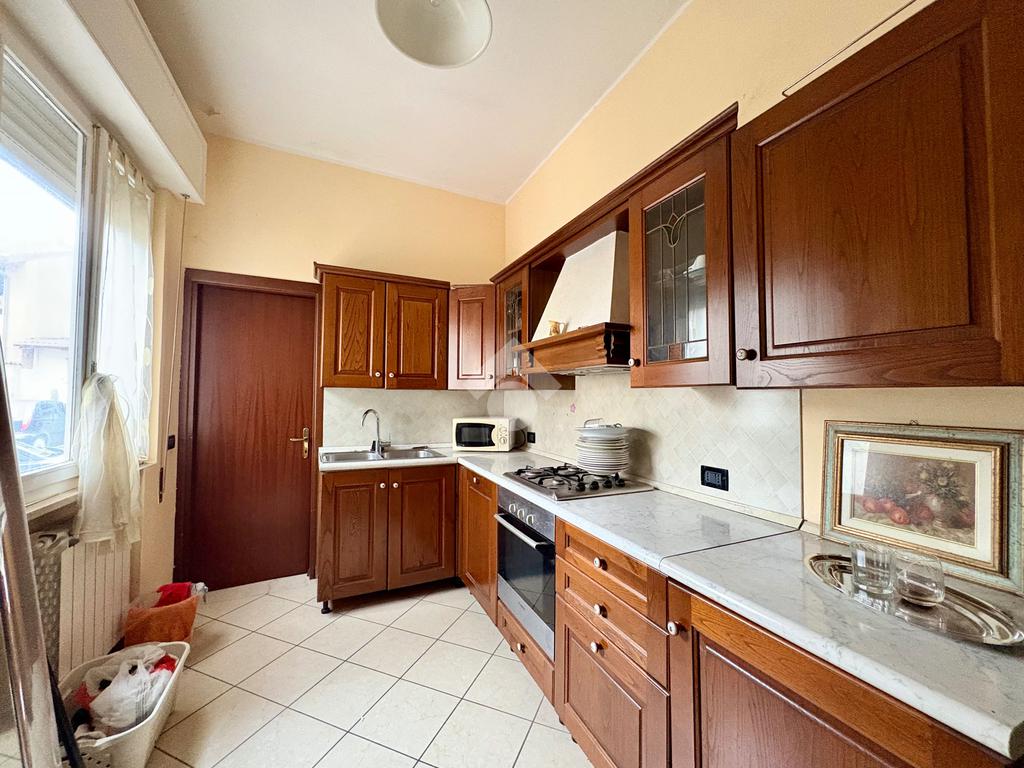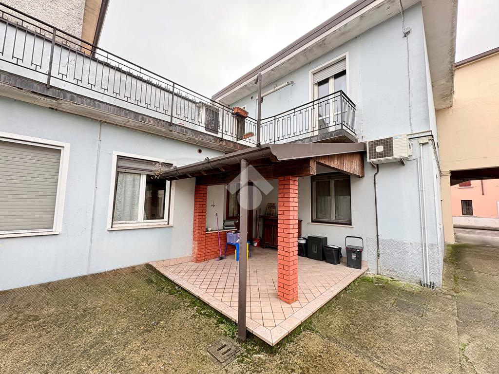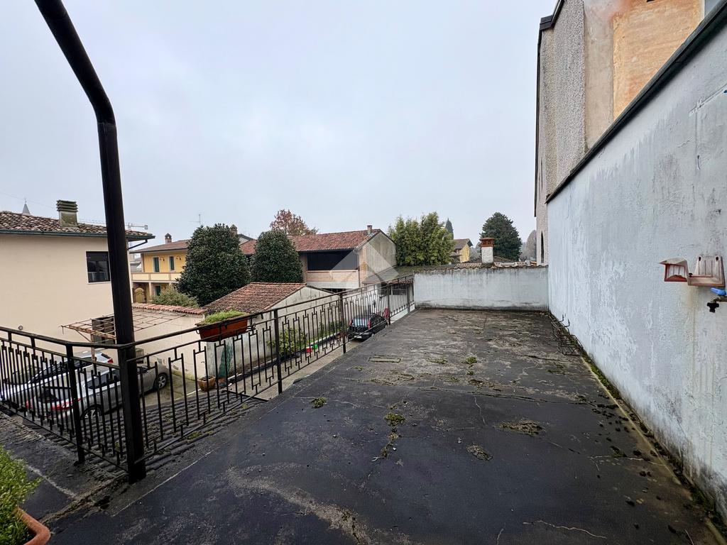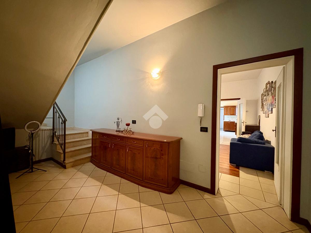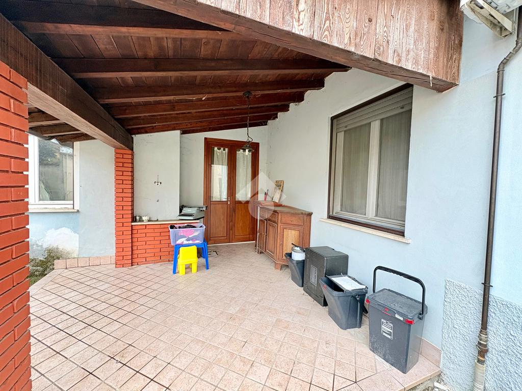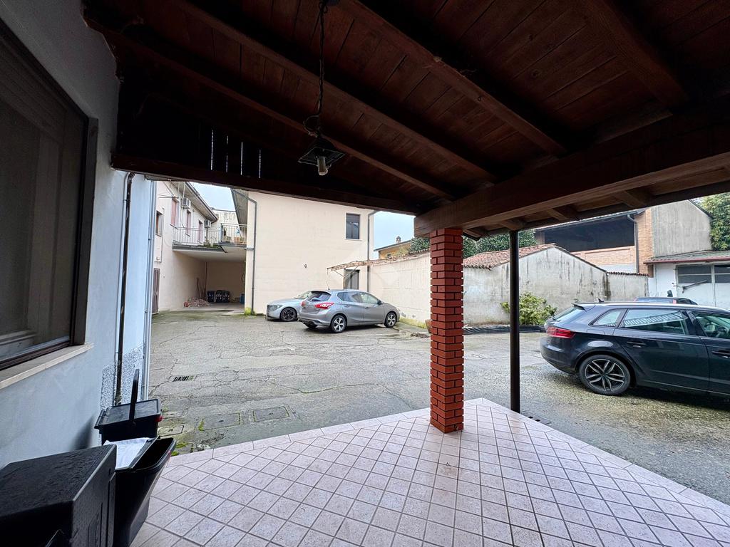 A due passi dal cuore del paese, dove tutto è raggiungibile a piedi, si trova questa porzione di casa semi indipendente che unisce comodità e privacy. L’ingresso principale affaccia direttamente sulla strada, mentre un secondo accesso sotto al portico conduce al cortile privato: due modi diversi di entrare, un’unica sensazione di casa.